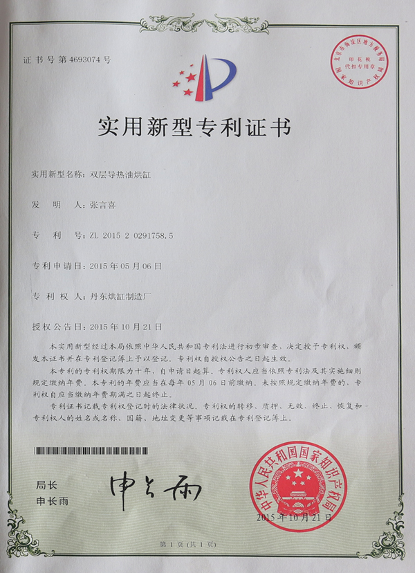 双层导热油烘缸是一种以导热油为热传导媒介,在常温下温度可以达到400℃的新型的钢板卷制焊接干燥设备。该设备广泛应用于造纸、印染、食品、化工等行业。双层导热油烘缸特点:运行系统简单,不需要水处理设备、凝结水排出和回收装置;安全性好,导热油在常温下可以达到400℃,而使用蒸汽烘缸蒸汽压力通常要达到0.5MPa,因此烘缸的技术要求显著降低;投资少,由于热油系统简单,使原有与蒸汽供热相关的配套设施,如水处理设备、除尘设备、给水设备等投入大幅减少,且在低压下运行,所以比蒸汽供热系统造价低,投资少,可比蒸汽系统节约投资1/3左右;约能源,由于导热油是常温液态运行,并且不像蒸汽那样将导热油充满整个烘缸内部,只是通入烘缸夹层,这样,较少的导热油就能达到干燥的温度要求,热油供热系统进出烘缸油温差一般为5~15℃,回油只需在油炉内升温5~15℃又可循环使用,每次补充热油量很少。另外烘缸采用蒸汽锅炉供热,热效率一般在25%左右,而采用导热油炉供热,热效率可以达到75%,与蒸汽加热相比节能50%左右。加热均匀,钢制焊接烘缸夹层内为螺旋结构,导热油按照设计的螺旋方向前进,可以根据工艺需要设置螺距,以保证导热油的流速合理和缸面的温度相差不大。